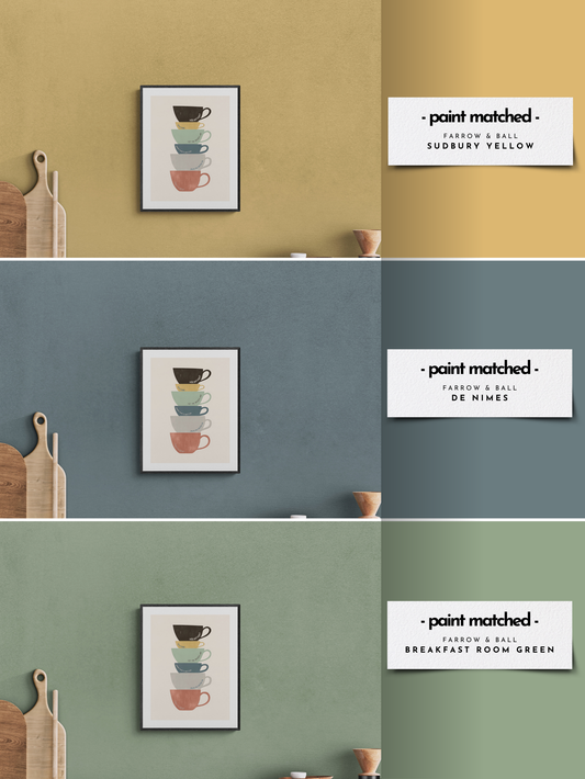 We understand it's difficult adding those finishing touches once you've painted your walls. Scouring shops trying to find prints that will match is hard. So here at Modela Prints, we've taken the guess work out of it - our prints are carefully created and curated to match popular paint colours - with more added all the time! So you can choose stylish, stunning prints for your home, knowing they will blend or contrast perfectly with your chosen colour scheme!